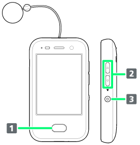 | 音量ボタン(▲/▼) | 通話音量や着信音量などの音量調節をします。 写真の撮影を行います。 音量ボタン(▼)の長押しでマナーモードを設定します。 |