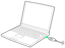 パソコンのUSB端子に、PC接続用microUSBケーブルのUSBプラグを差し込む