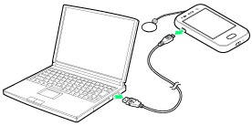 本機とパソコンからPC接続用microUSBケーブルを取り外す
