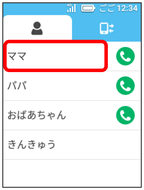 ホーム画面から電話帳(連絡先一覧画面)を表示し、連絡先を選択して電話をかけます。