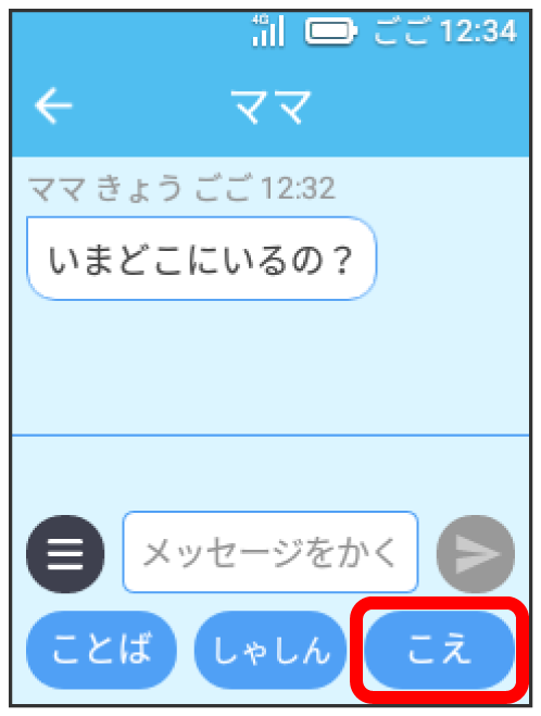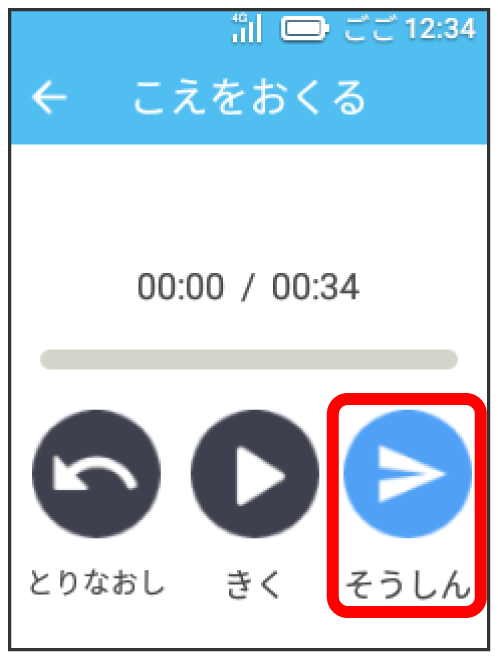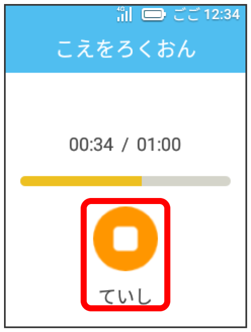 メッセージの録音中に電話の着信や警報メールの受信があると、録音は停止します。通話の終了後または警報メールの受信後は音声送信画面が表示されます。録音が完了していない場合は、をタップして録音をやり直してください。