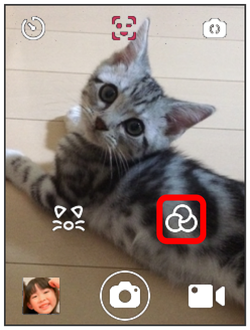 - 撮影画面をタップすると、フィルターのメニューが消えて撮影画面に戻ります。