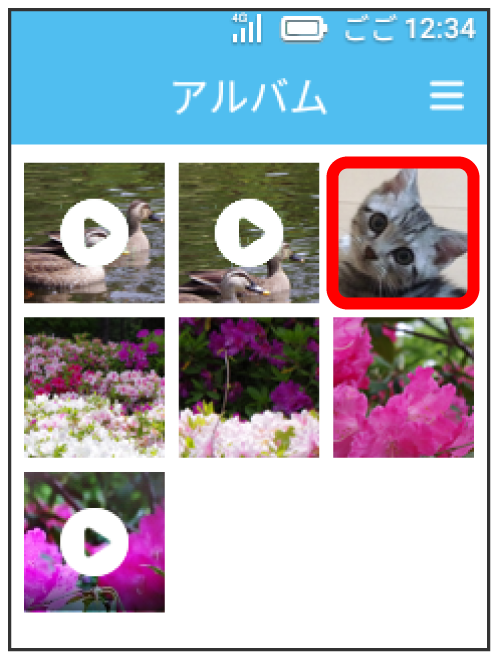 - 写真・動画一覧画面は、新しいものが上から順に並んでいます。