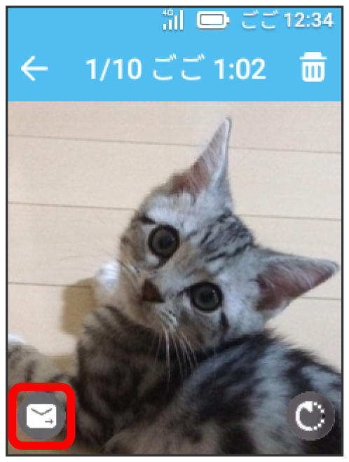 をタップします。 - 添付する写真を変更する場合は、ホーム画面に戻ってはじめからやり直します。