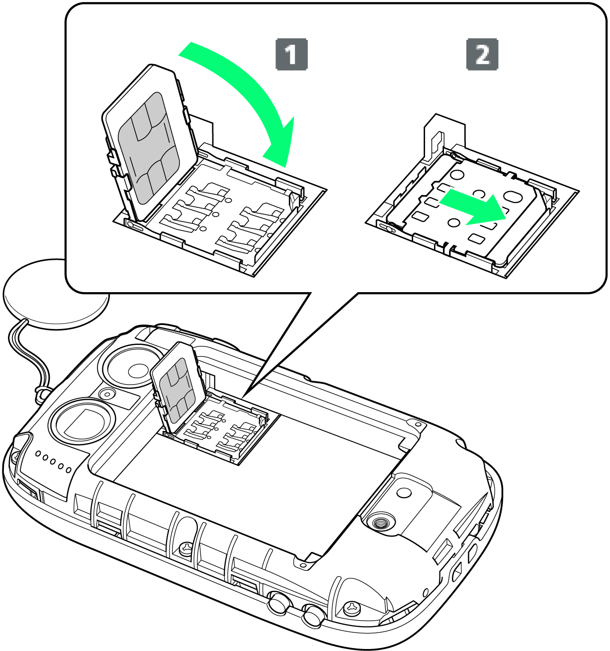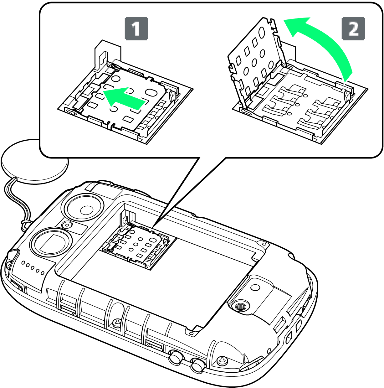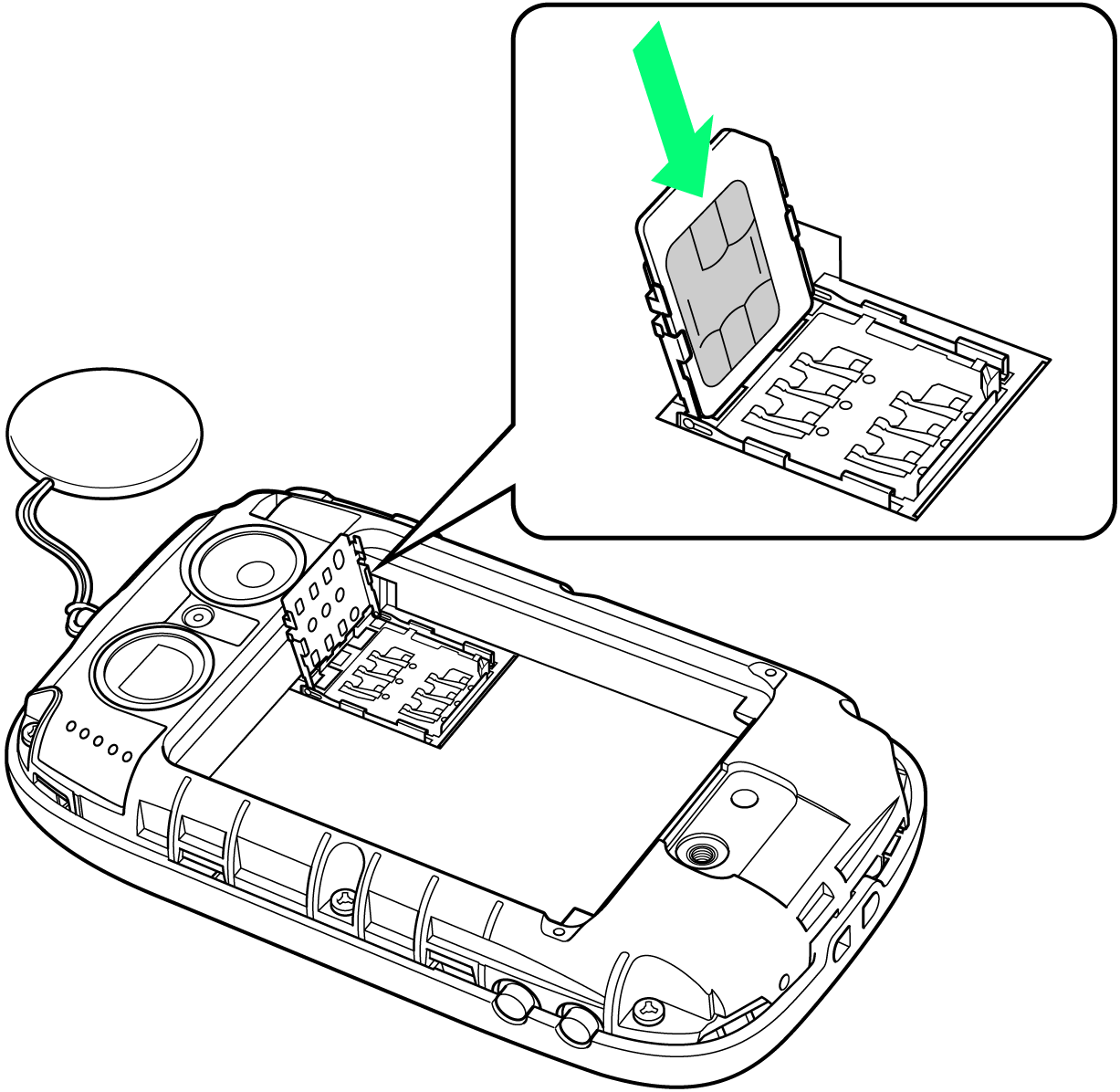 - USIMカードの切り欠きの位置に注意して、USIMカードを矢印の方向にスライドさせ、USIMカードスロットカバーに取り付けます。