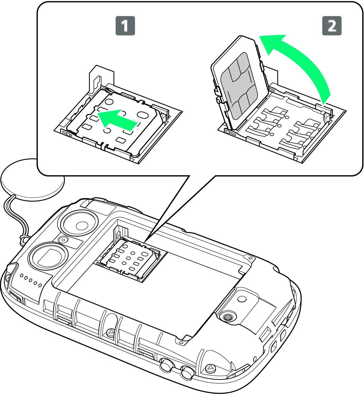 - USIMカードを矢印の方向にスライドさせ、USIMカードスロットカバーから取り外します。