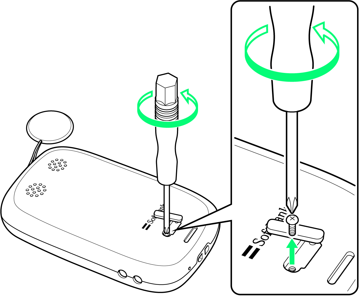 付属の専用工具(試供品)で、電池カバー止めネジを締める