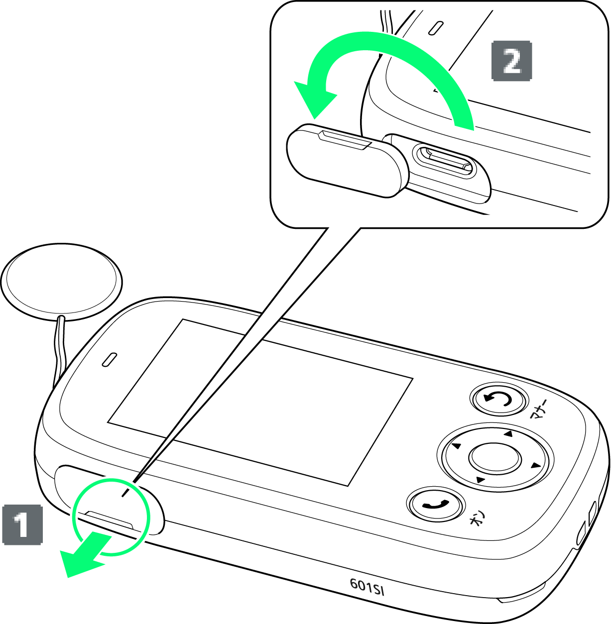 外部接続端子キャップを開ける