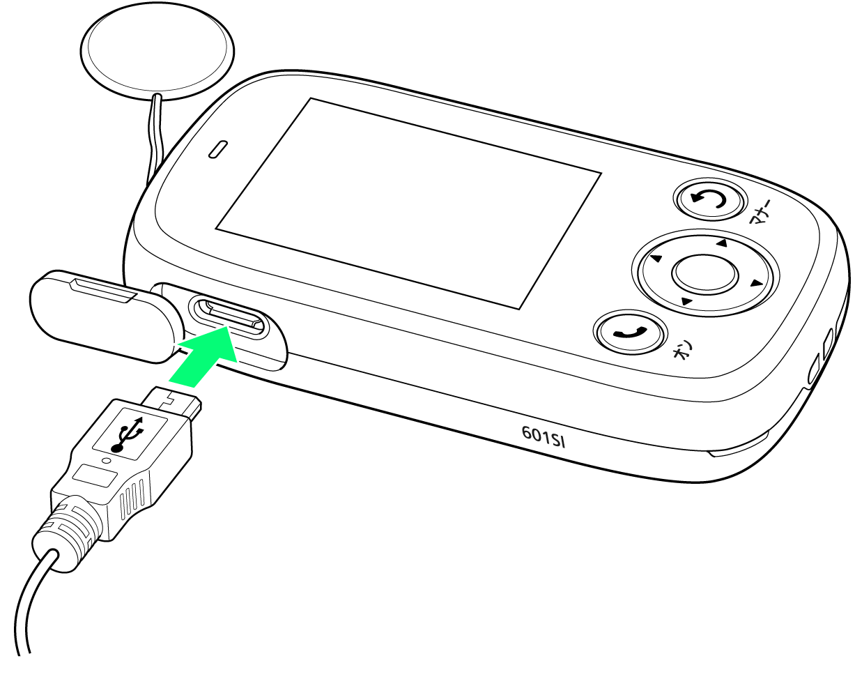 外部接続端子にmicroUSBケーブルを差し込む