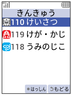 110番(警察)、119番(消防・救急)、118番(海上保安庁)へ発信できます。
