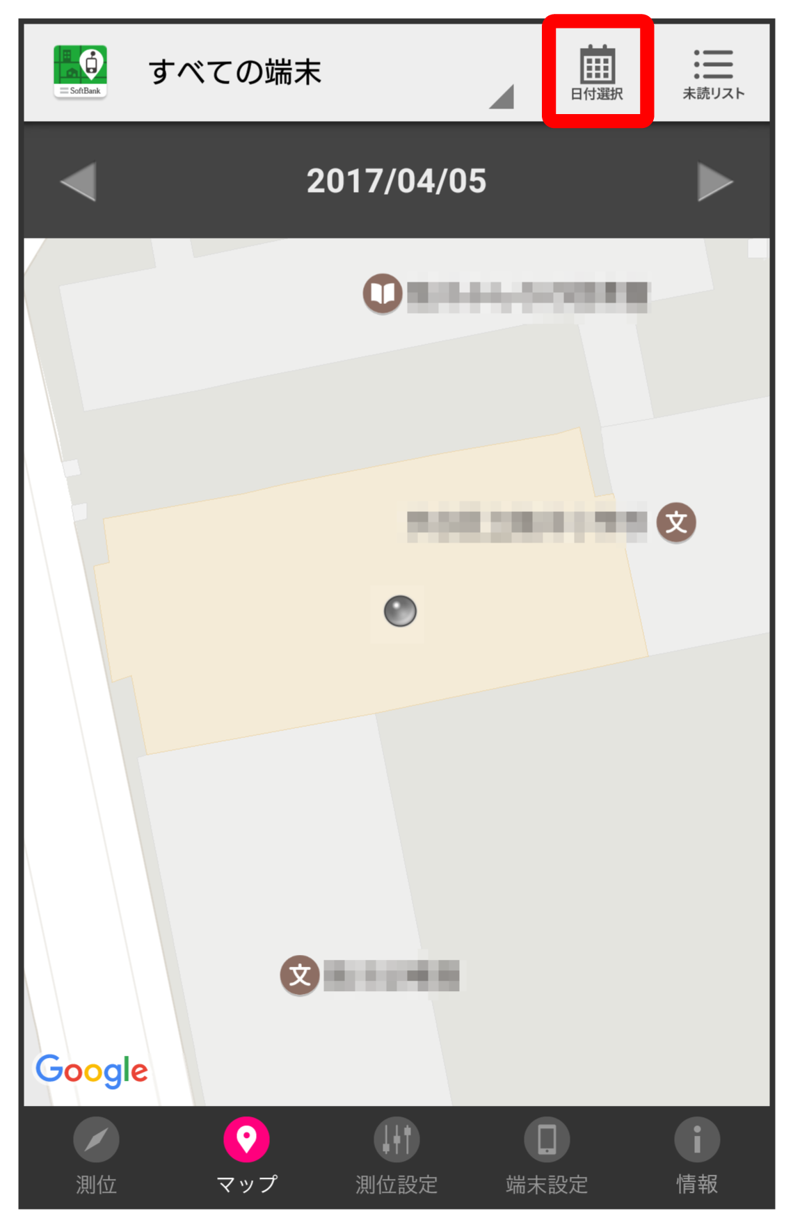 測位データの表示範囲を日付で指定します。複数日の測位データをまとめて表示させることもできます。