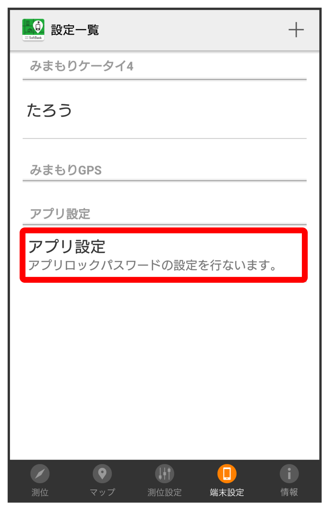 みまもりGPSアプリの設定をします。設定できる項目は次のとおりです。