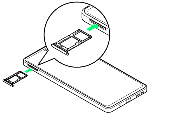 USIMカード/SDカードトレイを本機に差し込み、奥までまっすぐに押し込む