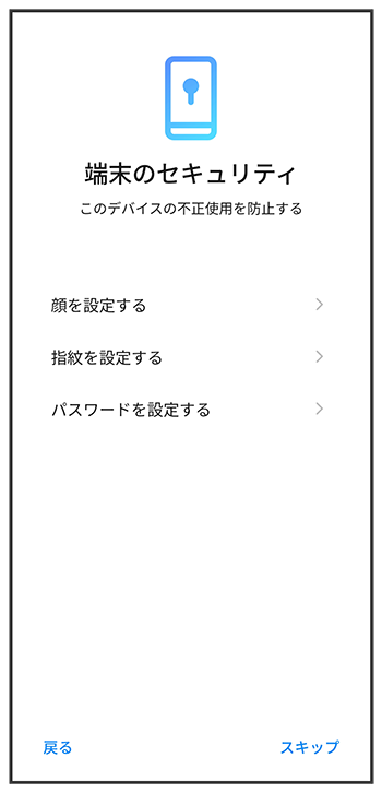 - 画面ロックの解除方法は、顔や指紋が認識されないときや、本機を再起動したときなどに必要となります。お忘れにならないようにご注意ください。