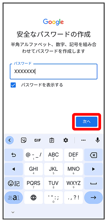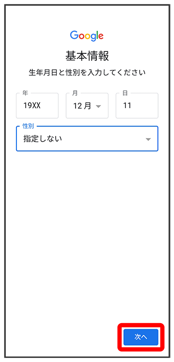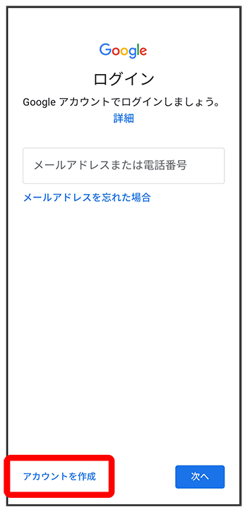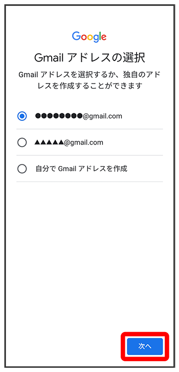- 独自のGmail アドレスを作成する場合は、「Gmail アドレスを作成」欄をタップ独自のGmail アドレスを入力をタップします。