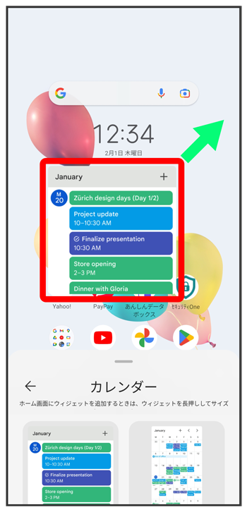 - 追加するウィジェットによっては、以降も操作が必要な場合があります。画面の指示に従って操作してください。