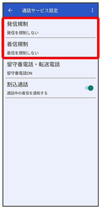 - 発着信規制中に電話やSMSを発信しようとすると、発信できない旨のメッセージが表示されます。お客様がご利用になる地域によっては、表示されるまでに時間がかかることがあります。