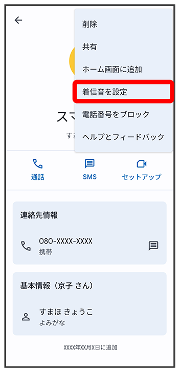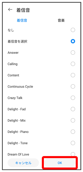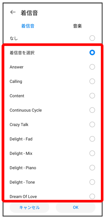 - ダウンロードした着信音などを設定するときは、をタップして画面の指示に従って操作してください。