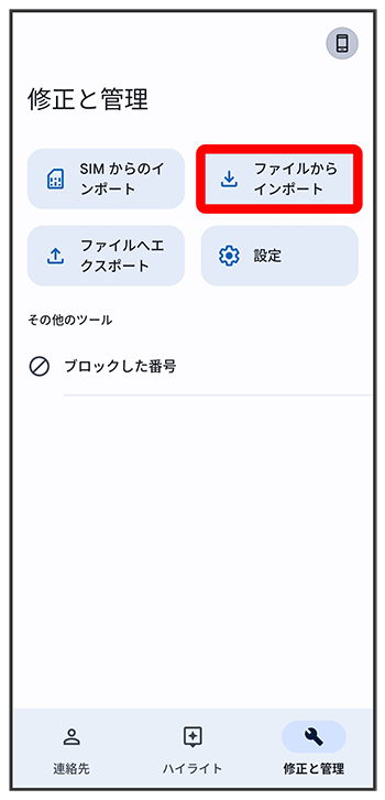 SDカードに保存(バックアップ)した電話帳データを読み込み(インポート)できます。
