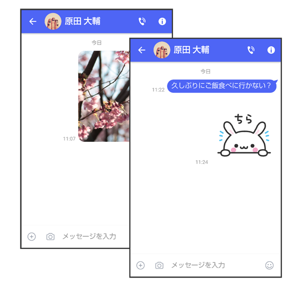 写真や動画はもちろん、スタンプや現在地の情報を送受信することもできます。