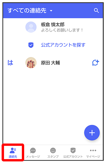 - をタップすると、連絡帳が開き、連絡先を作成することができます。
