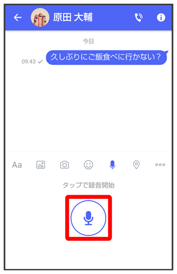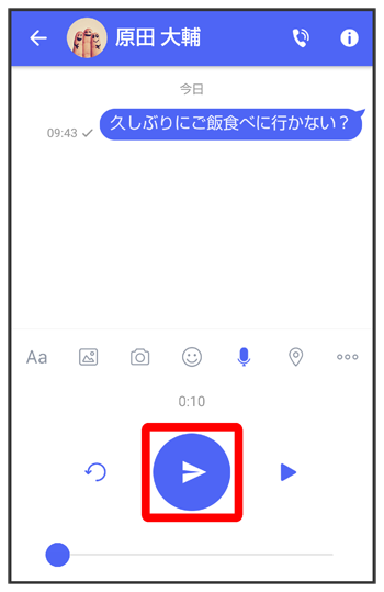 をタップすると音声メッセージが添付されたメッセージが送信されます。