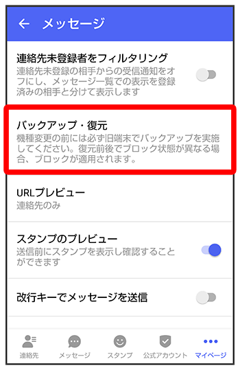 メッセージデータをSoftBankサーバから復元する