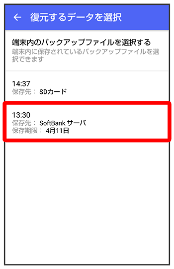 サーバーにバックアップしたデータを選択