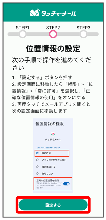 - 「通知の送信を タッチでメール に許可しますか?」が表示された場合は、をタップします。