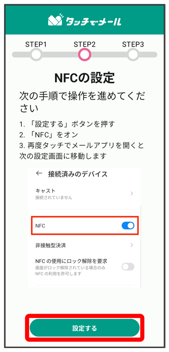 (設定)と操作しても設定できます。 詳しくは、「NFC利用の準備を行う」を参照してください。