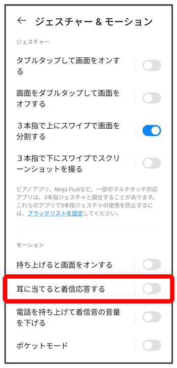 電話の着信時に、本機を耳に当てるだけで着信応答できるように設定します。