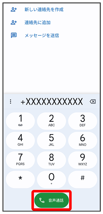 国番号のあとに相手の電話番号(先頭の「0」を除く)を入力