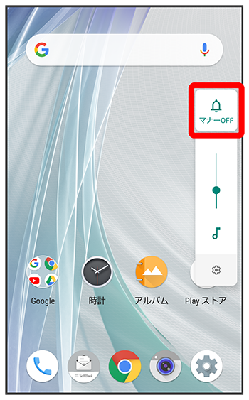 (マナーOFF)に変わり、マナーモードが解除されます。