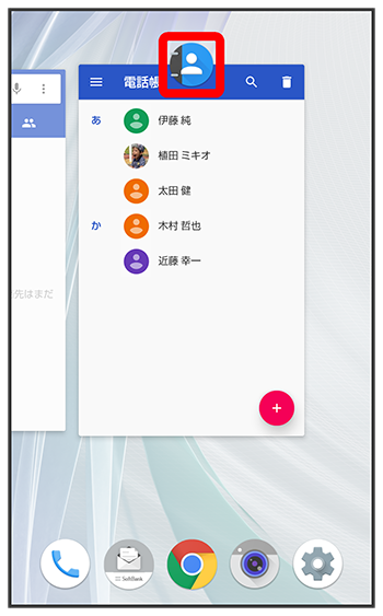 マルチウインドウ画面下に表示されたアプリの履歴一覧から、次に操作したいアプリをタップ