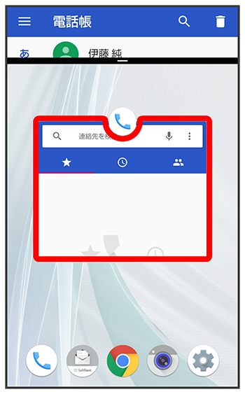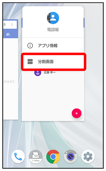 マルチウインドウ画面下にタップしたアプリが表示されます。