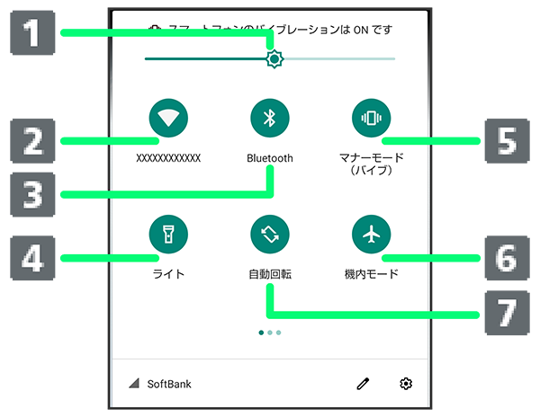 - マナーモード(OFF/ミュート/バイブ)の切り替え