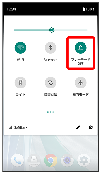 クイック設定パネルからマナーモード(バイブ)に設定する