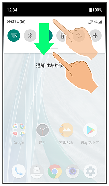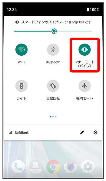 クイック設定パネルからマナーモード(ミュート)に設定する