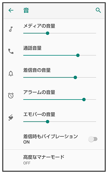 | 高度なマナーモード | がに変更されます。 高度なマナーモードの動作や例外、スケジュールなど、以前のマナーモードよりも詳細に設定できます。 |