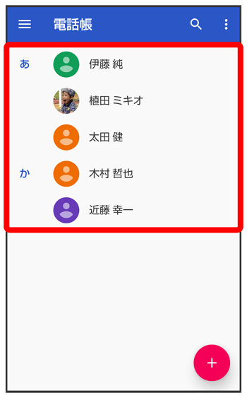 電話帳画面が表示されます。
