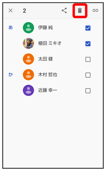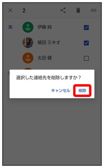 - 複数の連絡先を削除する場合は、続けてほかの対象の連絡先をタップします。