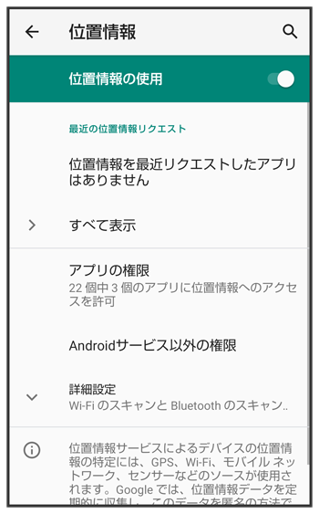 | Androidサービス以外の権限 | 追加され、Android サービス以外からの位置情報に対するアクセス権限を変更することができます。 |