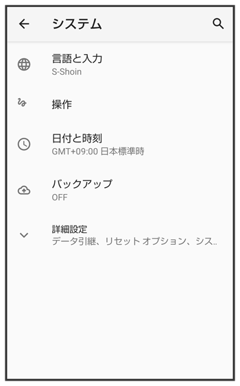 | 端末情報 | 「デバイス情報」に移動します。 |
