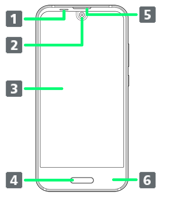 | 近接/明るさセンサー | 近接センサーは通話中にタッチパネルの誤動作を防ぎます。明るさセンサーは周囲の明るさに合わせて、ディスプレイの明るさを調整します。 |