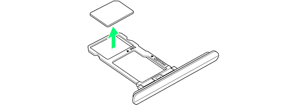 - ディスプレイを上にして、カードトレイを引き出してください。ディスプレイを下にしたり、本機を立てた状態でカードトレイを引き出すと、SIMカードやSDカードがカードトレイから外れ、紛失する可能性があります。