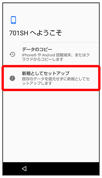 - をタップすると、ほかの端末からデータをコピーできます。画面に従って操作してください。