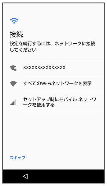 - Wi-Fiの設定を行わないときは、/を選択します。以降は、画面に従って操作してください。