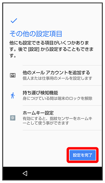 - My SoftBankの設定をする場合は、初期設定が完了した後に、ステータスバーを下にドラッグしてをタップしてください。