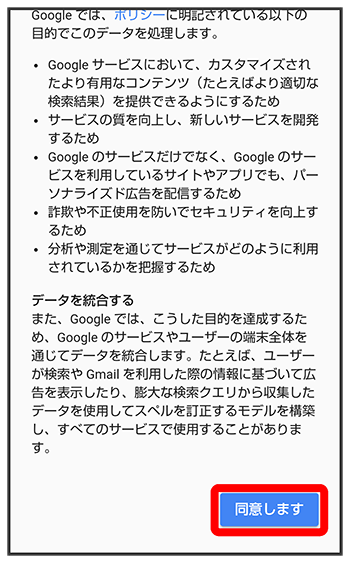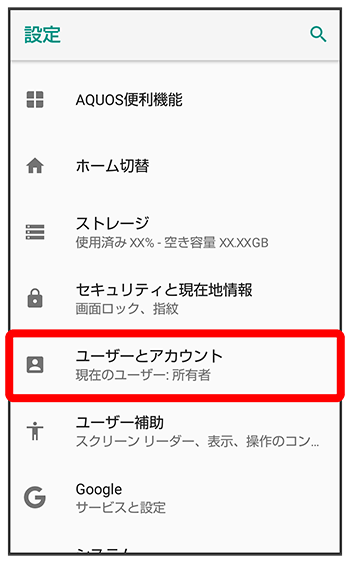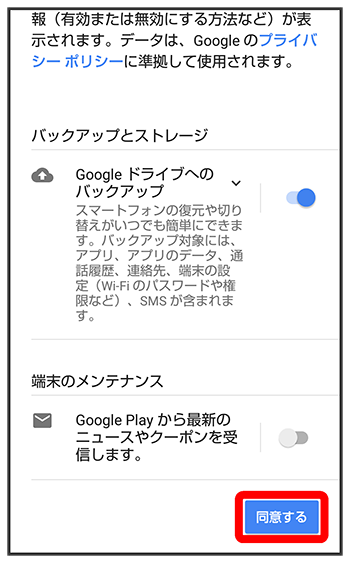 バックアップと復元を有効にするかどうかを設定Google Playから最新の情報を受信するかどうかを設定