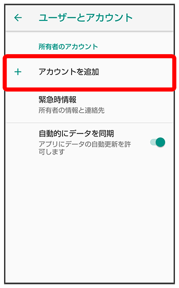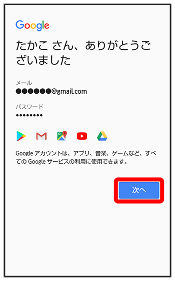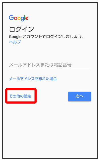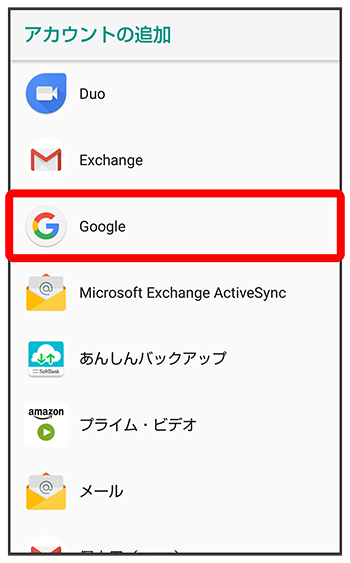 Google アカウントの追加画面が表示されます。